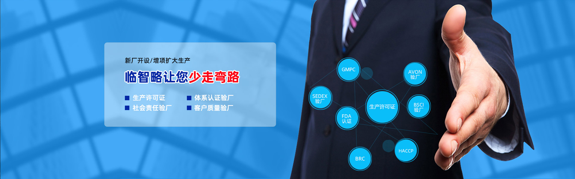 深圳市臨智略管理咨詢(xún)有限公司(以下簡(jiǎn)稱(chēng)臨智略咨詢(xún))成立于2013年,是一家集企業(yè)提供三品一械新廠(chǎng)選址,規(guī)劃設(shè)計(jì),裝修,生產(chǎn)資質(zhì)申請(qǐng),產(chǎn)品備案,F(xiàn)DA認(rèn)證,GMP認(rèn)證,清真認(rèn)證,年審等一站式配套服務(wù)的專(zhuān)業(yè)企業(yè)管理咨詢(xún)公司。總部設(shè)在深圳,其中東莞、廣州都有運(yùn)營(yíng)分公司。 公司為發(fā)展需要,設(shè)立六大部門(mén):業(yè)務(wù)部、輔導(dǎo)部、財(cái)務(wù)部、管理部、設(shè)計(jì)部、法規(guī)部;其輔導(dǎo)部涉及七大行業(yè)版塊:化妝品行業(yè)服務(wù)部、食品行業(yè)服務(wù)部、消毒產(chǎn)品行業(yè)服務(wù)部、醫(yī)療器械行業(yè)服務(wù)部、汽車(chē)電子行業(yè)服務(wù)、紡織品行業(yè)服務(wù)部等 目前公司擁有十多名資深咨詢(xún)顧問(wèn)師,涉足各行業(yè)多項(xiàng)體系,咨詢(xún)師均由曾就職企業(yè)高管或大認(rèn)證機(jī)構(gòu)(如ITS、SGS、BV、